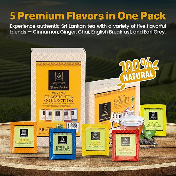 Ceylonzon Variety Pack of 5 Flavor Premium Ceylon Tea Classic Taste 5 Tea Bags